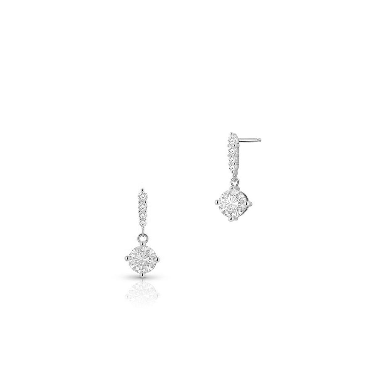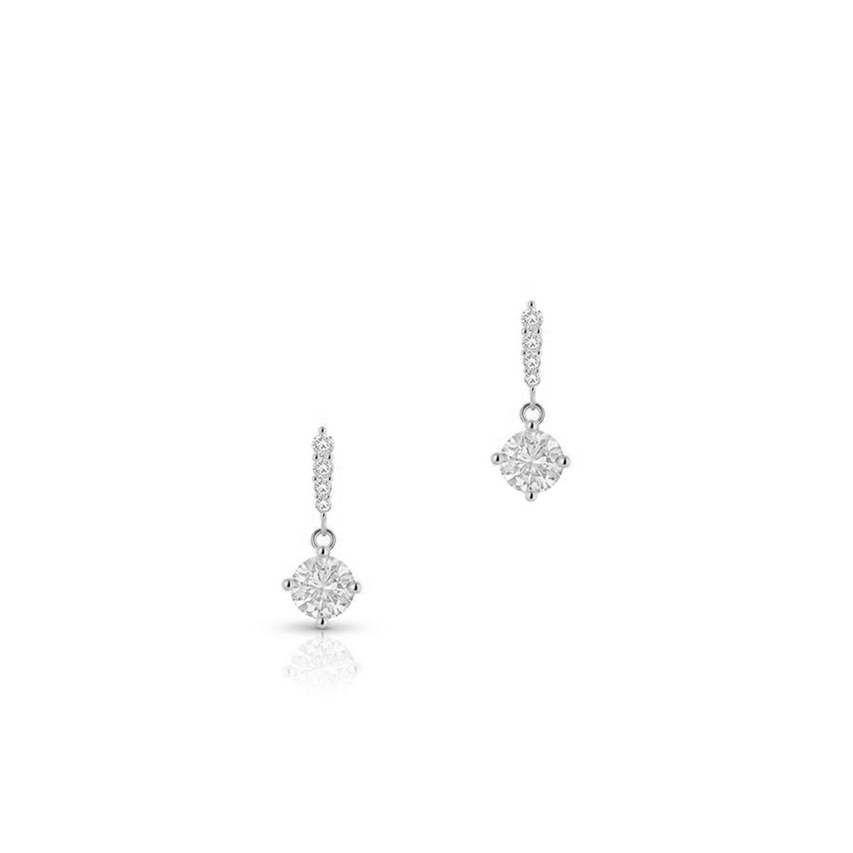 Srebrne kolczyki z cyrkoniami, z kolekcji W.KRUK, zachwycają ponadczasowym wzornictwem. Mieniące się cyrkonie, wprawione w srebrny kruszec, przepięknie połyskują przy najmniejszym ruchu głową. Połączenie blasku rodowanego srebra i cyrkonii nada elegancki ton codziennym stylizacjom i kreacjom na wieczór.