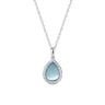 Inspirowany stylem retro, komplet srebrnej biżuterii w odcieniach błękitu zachwyca subtelnością wzoru. Jasny odcień kamienia w centrum znakomicie współgra z blaskiem otaczających go cyrkonii i chłodną barwą rodowanego srebra. Srebrny wisiorek i kolczyki w kształcie łezki, emanujące kobiecością i wdziękiem, otulą stylizacje zmysłowym blaskiem. Doskonały pomysł na prezent dla miłośniczki dyskretnej, kolorowej klasyki.