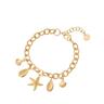 Biżuteria jak wspomnienie lata! Komplet składający się z kolczyków w kształcie muszli i masywnej bransolety z zawieszkami spodoba się fankom wyrazistych zdobień i złotego blasku. Duże ogniwa bransolety zdobią zawieszki o wzorach nawiązujących do morskich głębin i do wakacji nad morzem. Blask złoconego mosiądzu jest ponadczasowy, pasuje zarówno do letnich stylizacji jak i kreacji na specjalne okazje, uroczystości i bale. Wyróżnij się z tłumu z kolekcją od Picky Pica!