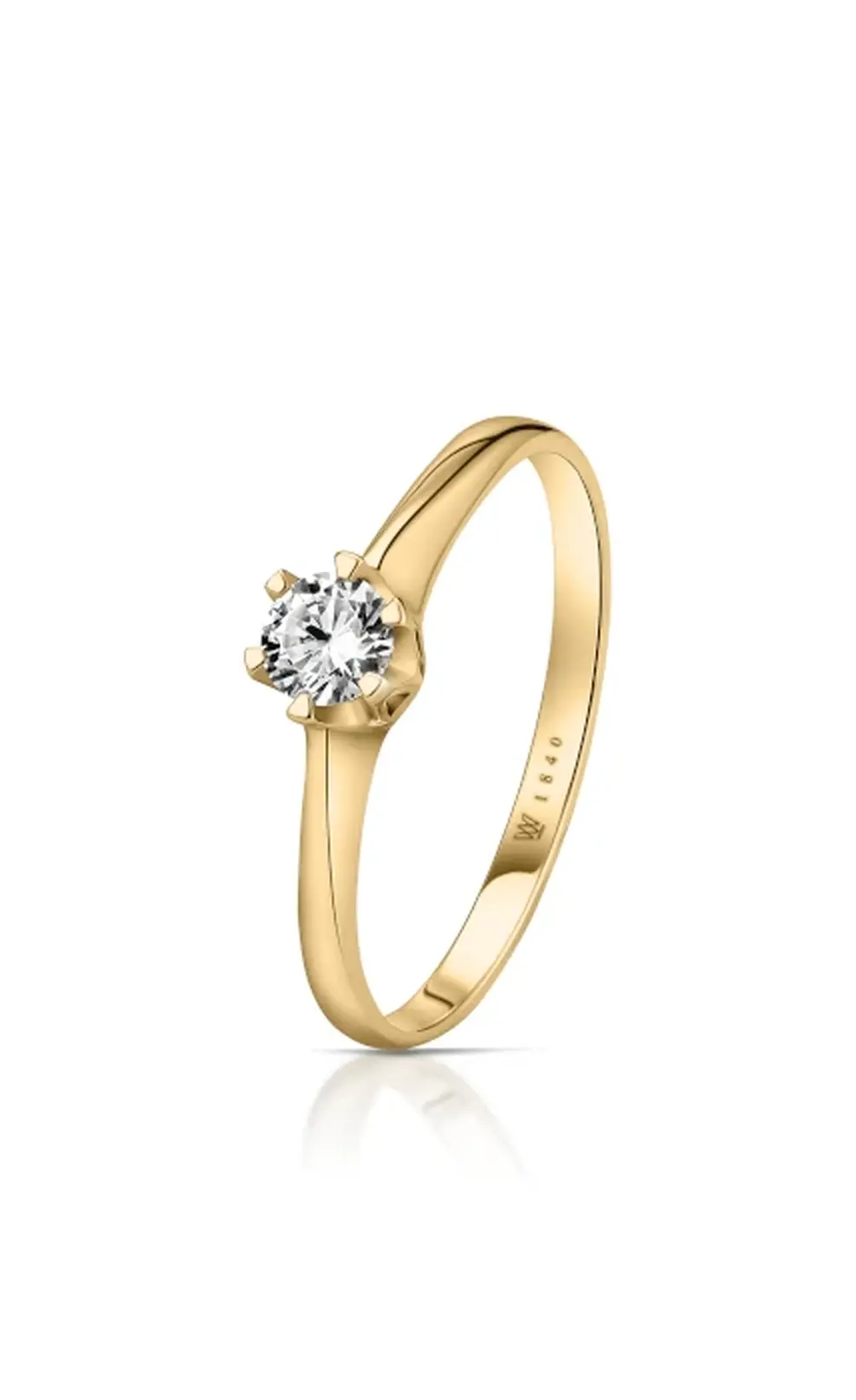 Żółte złoto to połączenie złota, srebra i miedzi. W zależności od dodatków, jego odcień może być bardziej, lub mniej delikatny. Taka barwa będzie stanowiła idealny wybór dla fanki klasyki. Jeżeli Twoja ukochana ma ciepły typ urody, a tym samym jej włosy są złociste, a cera pełna blasku, postaw na pierścionek z żółtego złota, który stanie się harmonijnym dopełnieniem jej urody.