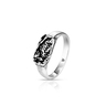 Tu główną rolę, w obu przypadkach, odgrywa intrygująca, nierówna i lekko chropowata faktura centralnej części sygnetu, przyciemniona bezpretensjonalną czernią oksydy. Ciemna, jakby przybrudzona powierzchnia o nieregularnych krawędziach to zdobienie efektowne i dyskretne zarazem, sprawdzi się w codziennych stylizacjach. Dla miłośników większych form, dobrym wyborem będzie masywniejszy sygnet, drugi, będzie świetnym dodatkiem dla kogoś kto preferuje mniej rzucający się w oczy, nienachalny styl.