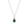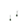Komplet złożony z wisiorka i kolczyków zapinanych na sztyft zdobią elementy w kształcie łezki, wypełnione bezbarwnymi kamieniami i cyrkonią o nasyconej barwie. Głęboki odcień zieleni tworzy wraz z połyskującymi kamieniami i blaskiem srebra przykuwającą wzrok kompozycję. Wyrazisty kolor i klasyczny charakter zdobienia nadadzą elegancki ton codziennym i wieczorowym stylizacjom.