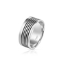 Srebrny pierścionek z kolekcji Longplay również prezentuje klasyczną, niezapisaną pięciolinię, stanowiącą wyraz gotowości do zapisywania nowych emocji i rytmów w waszym związku.