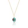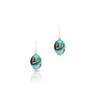 Elementami ozdobnymi są tu turkusowo-brązowe łezki ze szkła Murano o wymiarze 2 cm na 1,3 cm. Długość całkowita kolczyków to 3,5 cm, a wisiorka 3 cm.