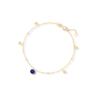 W ich centralnym punkcie znajduje się przepiękny kamień o głębokim, granatowym odcieniu – lapis lazuli. Łańcuszek typu ankier, tak w przypadku bransoletki, jak i naszyjnika, ozdobiony został dodatkowo złotymi kuleczkami oraz płaskimi, okrągłymi zawieszkami.