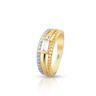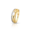 Drugi pierścionek to pozłacana biżuteria ze srebra, która zachwyca swoją elegancją. Składa się z trzech elementów, w tym obrączki wysadzanej cyrkoniami, klasycznego pierścionka z oszałamiającą cyrkonią w szlifie bagietkowym oraz obrączki stworzonej z usztywnionego splotu wisiorka. To połączenie piękna i wytworności sprawia, że jest to doskonały wybór na różne okazje, dodając blasku zarówno specjalnym chwilom, jak i codziennym stylizacjom.