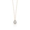 Motywem przewodnim w tym zestawie biżuterii jest element ozdobny w kształcie łezki, bogato wysadzany cyrkoniami w różnych rozmiarach. Wymiary łezki w kolczykach to 0,8 cm na 0,6 cm, a w przypadku wisiorka – 1 cm na 0,7 cm.