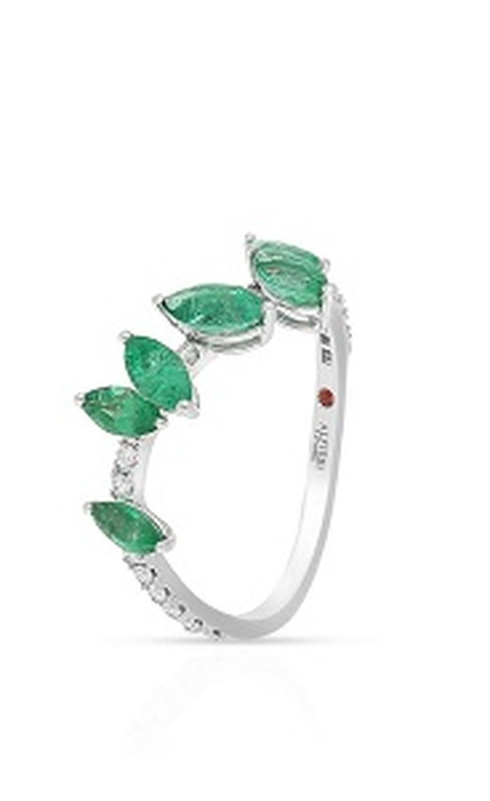 Ten wyjątkowy pierścionek przypadnie do gustu kobietom kochającym styl vintage. Biżuterię wykonano w oparciu o najwyższej jakości materiały. W żółte złoto próby 585 wprawiono szlachetne szmaragdy oraz diamenty symbolizujące doskonałość. Klejnoty te charakteryzują się intensywnym blaskiem, nosząca pierścionek kobieta może być pewna, że przykuje uwagę otoczenia. Pierścionek można zestawić z kolczykami i wisiorkiem z kolekcji.
