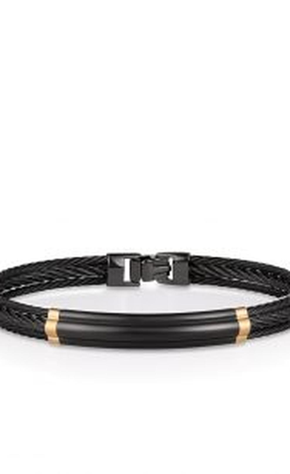 Ten ciekawy model bransoletki to idealna propozycja dla pewnych siebie mężczyzn. Dodatek zachwyca minimalistyczną kompozycją kolorystyczną, w której czerń okrągłych koralików o porowatej fakturze przełamano zimnym, srebrzystym blaskiem stali szlachetnej. Wykonany z niej element ozdobny przykuwa uwagę oryginalnym splotem przypominającym jodełkę. Oferowana bransoleta z czarnymi koralami doskonale podkreśli niepokorny, buntowniczy charakter wielu codziennych stylizacji.