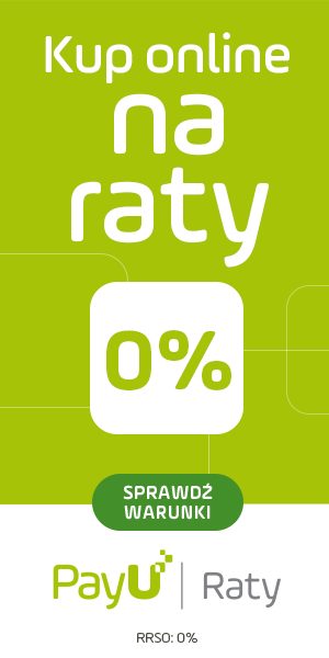 Możesz również skorzystać z Rat PayU dostępnych dla zakupów z przedpłatą, jeżeli: zakupy wraz z wysyłką mieszczą się w przedziale od 300 do 50 000 zł. Możliwe do 36 rat z decyzją nawet w 15 min. sprawdź Raty PayU.