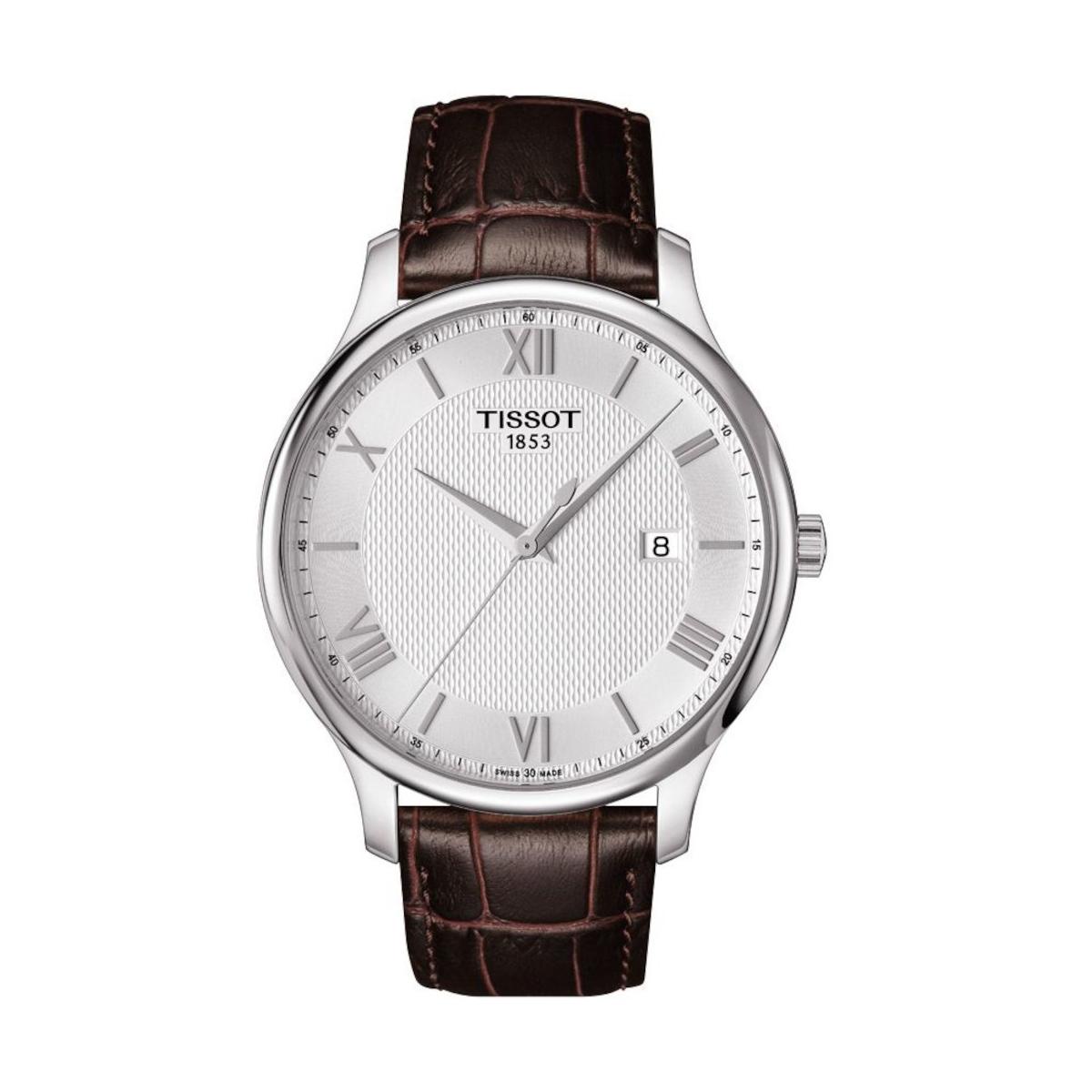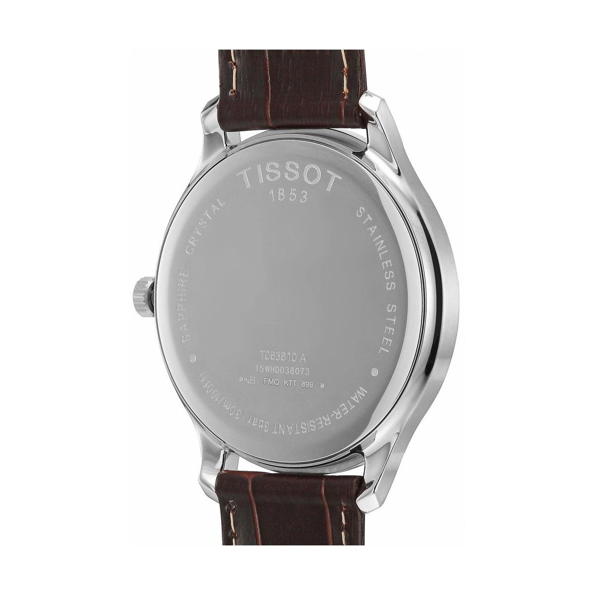 Męski Tissot z kolekcji T-Classic charakteryzuje się kopertą o szerokości 42 mm, wykonaną ze stali szlachetnej. Pasek skórzany zakończony jest wygodnym zapięciem. Czasomierz posiada szwajcarski mechanizm kwarcowy z datownikiem. Wodoszczelność do 3 bar pozwala wyłącznie na lekkie zachlapanie wodą. Srebrna tarcza posiada czytelne indeksy i wskazówki. Chroniona jest przez odporne na zarysowania szkło szafirowe. To doskonała propozycja dla osób ceniących tradycję w połączeniu z nowoczesnością.