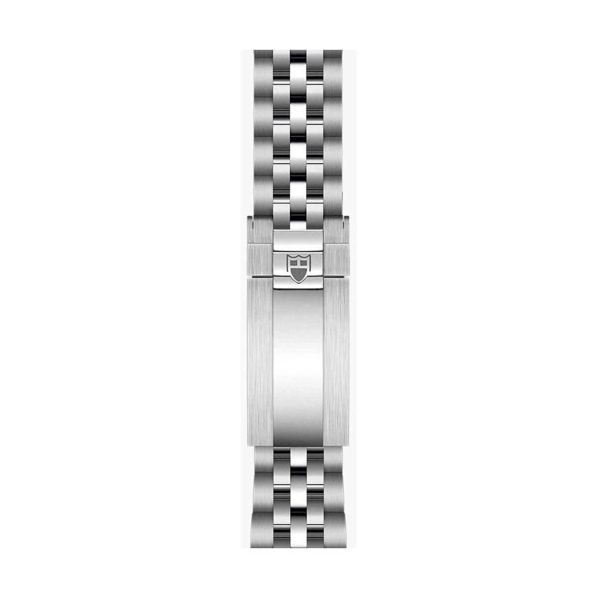 Damski zegarek Tudor Black Bay One wyróżnia się kopertą o szerokości 31 mm, wykonaną ze stali szlachetnej. Bransoleta, z tych samych materiałów, zakończona jest wygodnym zapięciem. Niebieska tarcza posiada widoczne indeksy i wskazówki, co ułatwia odczytanie aktualnej godziny, a szafirowe szkło chroni ją przed uszkodzeniami. Mechanizm automatyczny MT5201 o 50-godzinnej rezerwie chodu, zapewnia ciągłość działania. Wodoszczelność do 10 bar pozwala na pływanie przy powierzchni wody. Zegarek to połączenie nowoczesnego stylu z klasyczną elegancją.