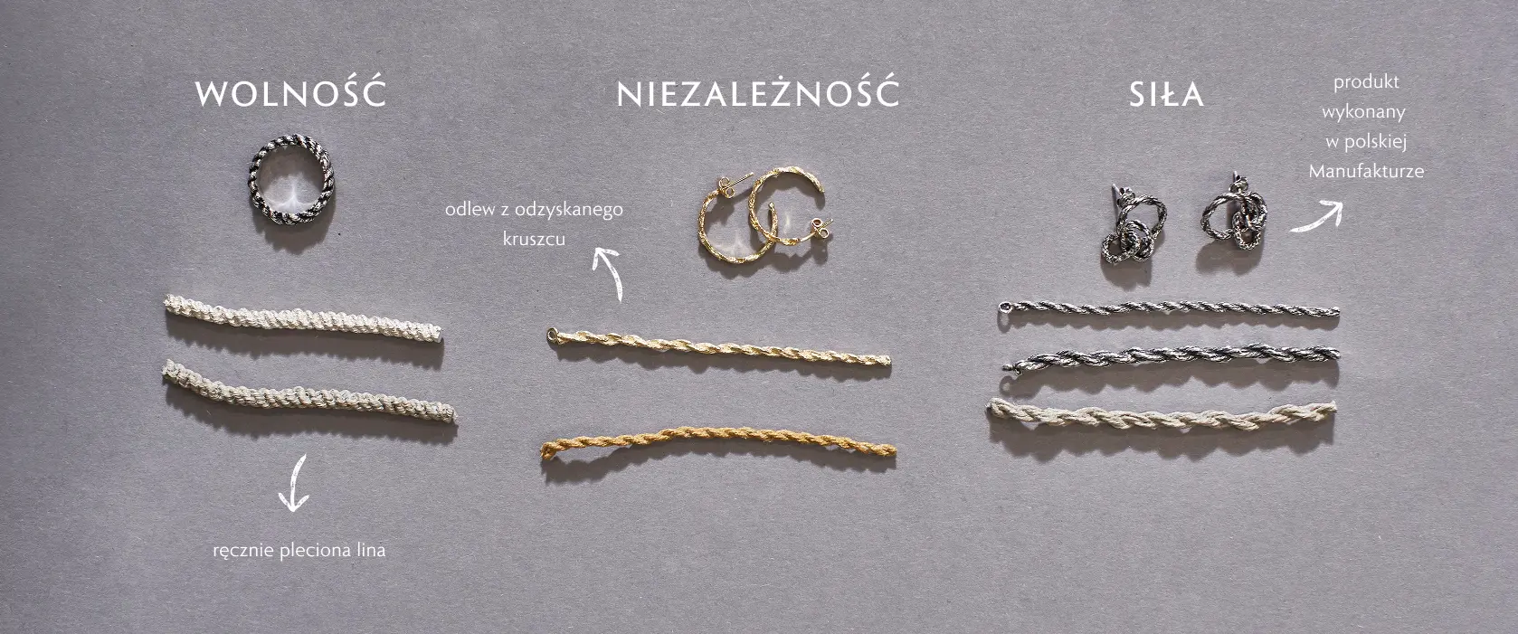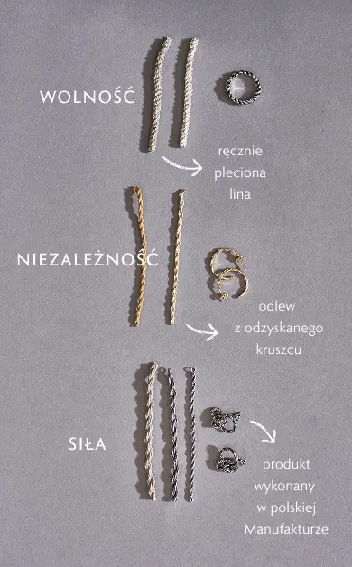 Biżuteria z kolekcji Freedom Forever jest wyrazista, dokładnie tak, jak jej współtwórczyni. Pewna siebie, świadoma, wierna swoim wartościom, ceniąca autentyczność i bliskość natury. Wszystkie elementy kolekcji uzupełniają się, można je ze sobą łączyć po kilka na raz, tworząc własne kompozycje.